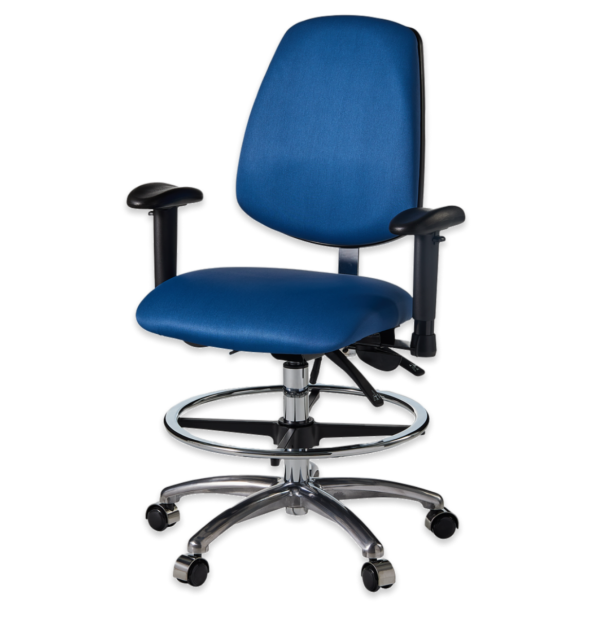 The Clean Room chairs were designed for applications where the concentration of air-borne particles must be kept below a desired level. They are evaluated by independent laboratories to meet Fed Standard 209E and ISO 14644-1, which is the industry standard for particulate requirements. We offer Clean Room chairs which are certified for ISO Class 4 (Clean Room Class 10) and ISO Class 5 (Clean Room Class 100) standards.